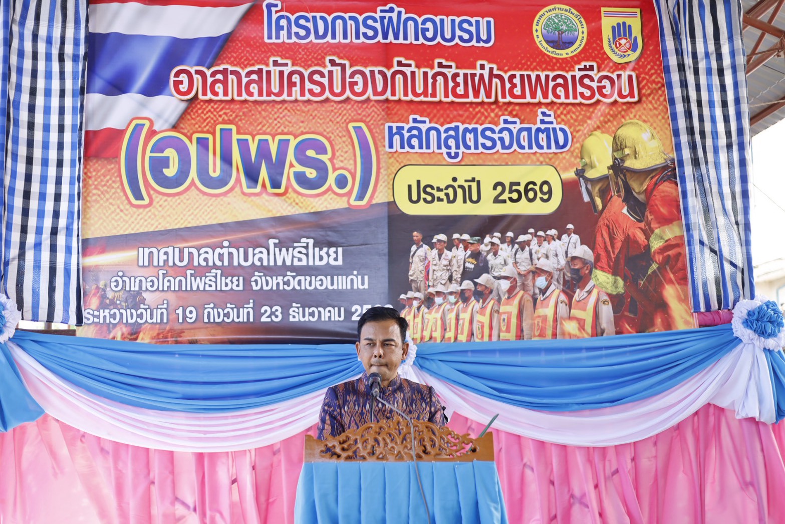 เทศบาลตำบลโพธิ์ไชย อำเภอโคกโพธิ์ไชย จังหวัดขอนแก่น นำโดย นายเสาวฤทธิ์ คามกะสก นายกเทศมนตรีตำบลโพธิ์ไชย ได้จัดกิจกรรมโครงการฝึกอบรมอาสาสมัครป้องกันภัยฝ่ายพลเรือน (อปพร.) หลักสูตรจัดตั้ง อปพร. ประจำปีงบประมาณ 2569 ระหว่างวันที่ 19-23 ธันวาคม 2568