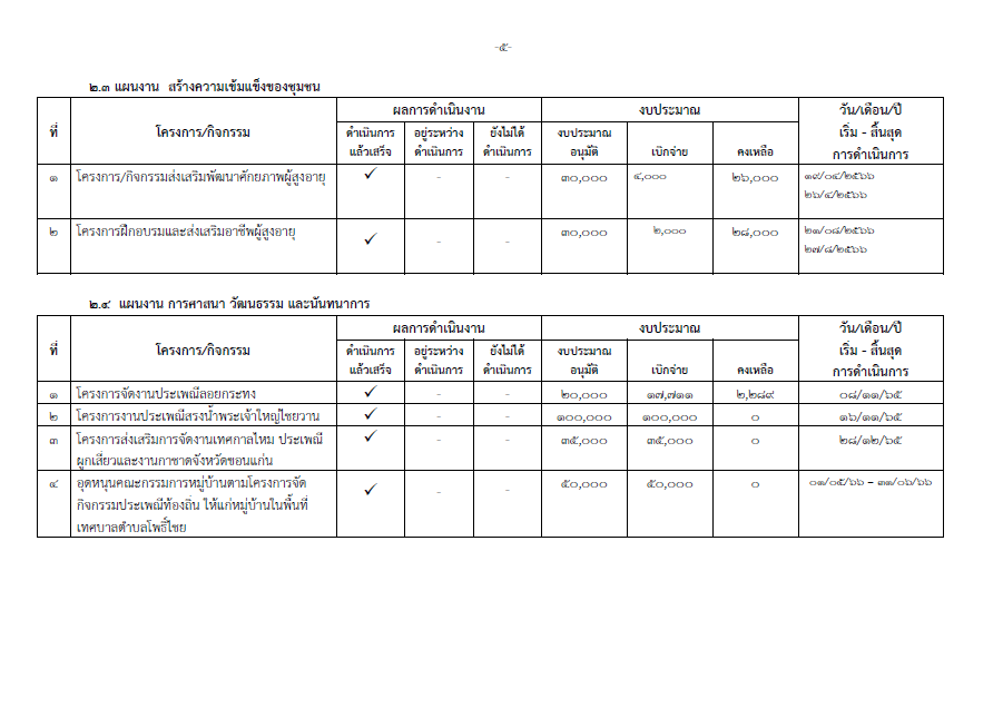 เรื่อง รายงานผลการดำเนินงาน ประจำปีงบประมาณ 2566