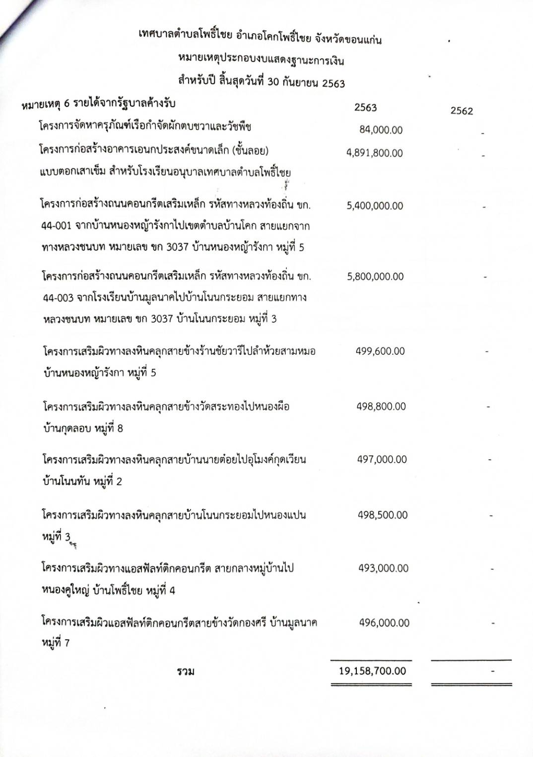 งบแสดงฐานะการเงินและงบอื่นๆ ประจำปี งบประมาณ 2563