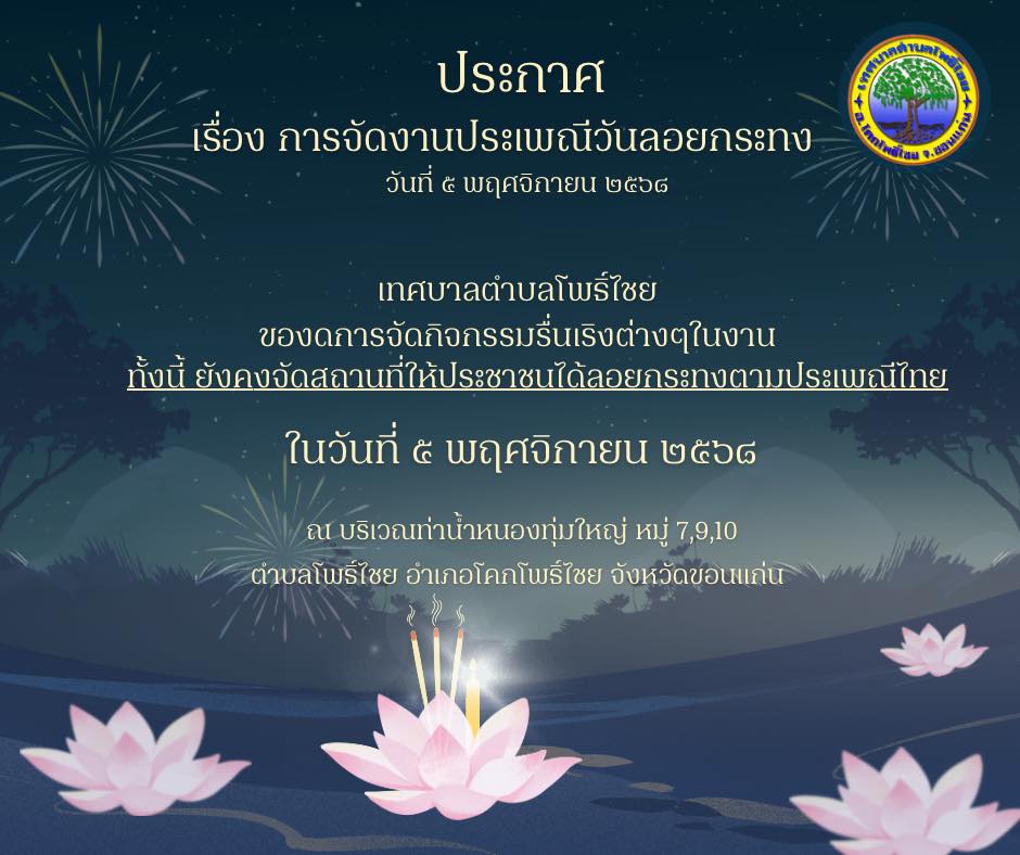 ประกาศเรื่องการจัดงานประเพณีวันลอยกระทง วันที่ ๕ พฤศจิกายน ๒๕๖๘